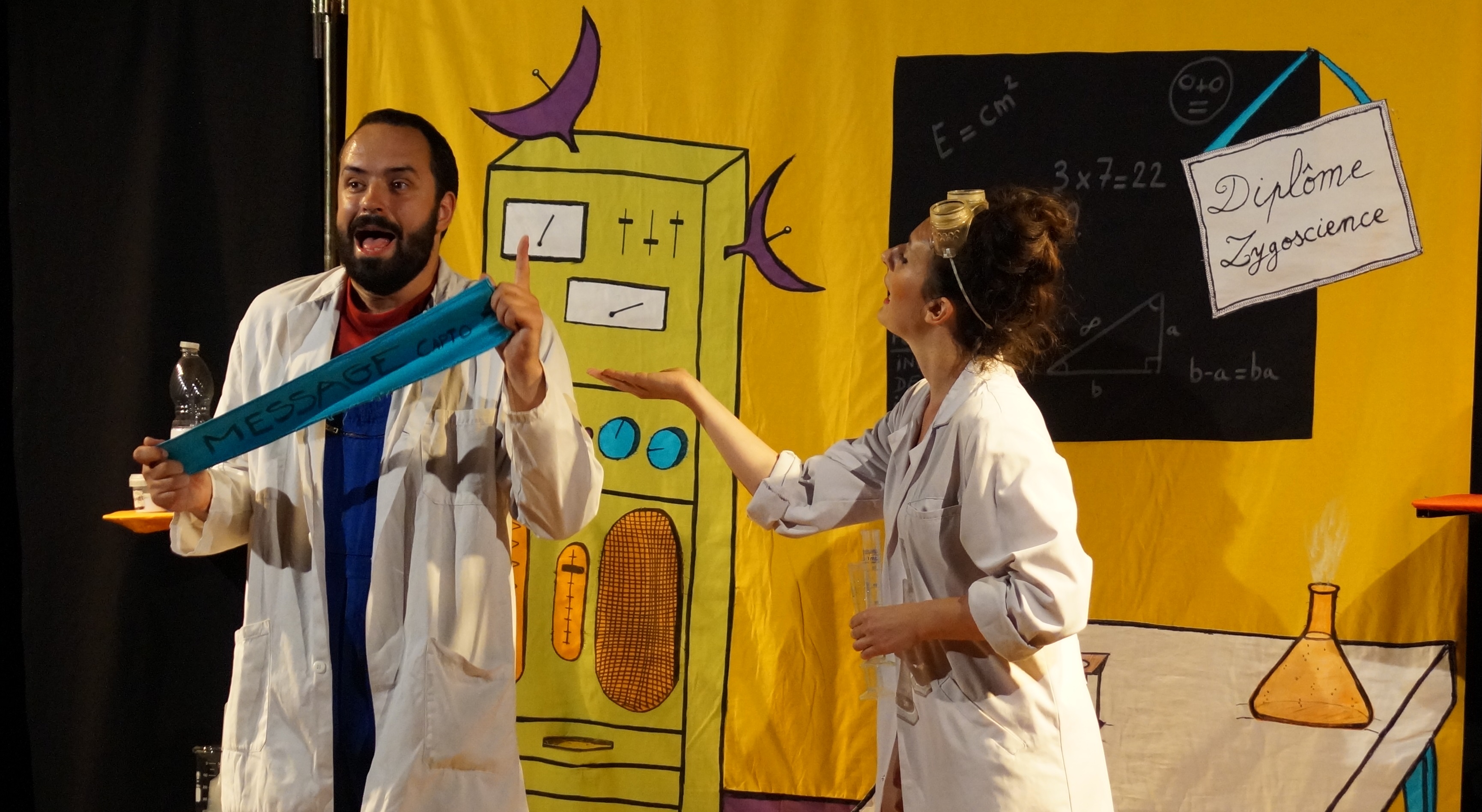 Dès le début tournée vers la création originale, la compagnie écrit et met en scène un spectacle jeune public scientifique, Panique chez les Mynus. Les enfants et les parents ne s’ennuient pas un seul instant, et participent aux expériences sur la scène.